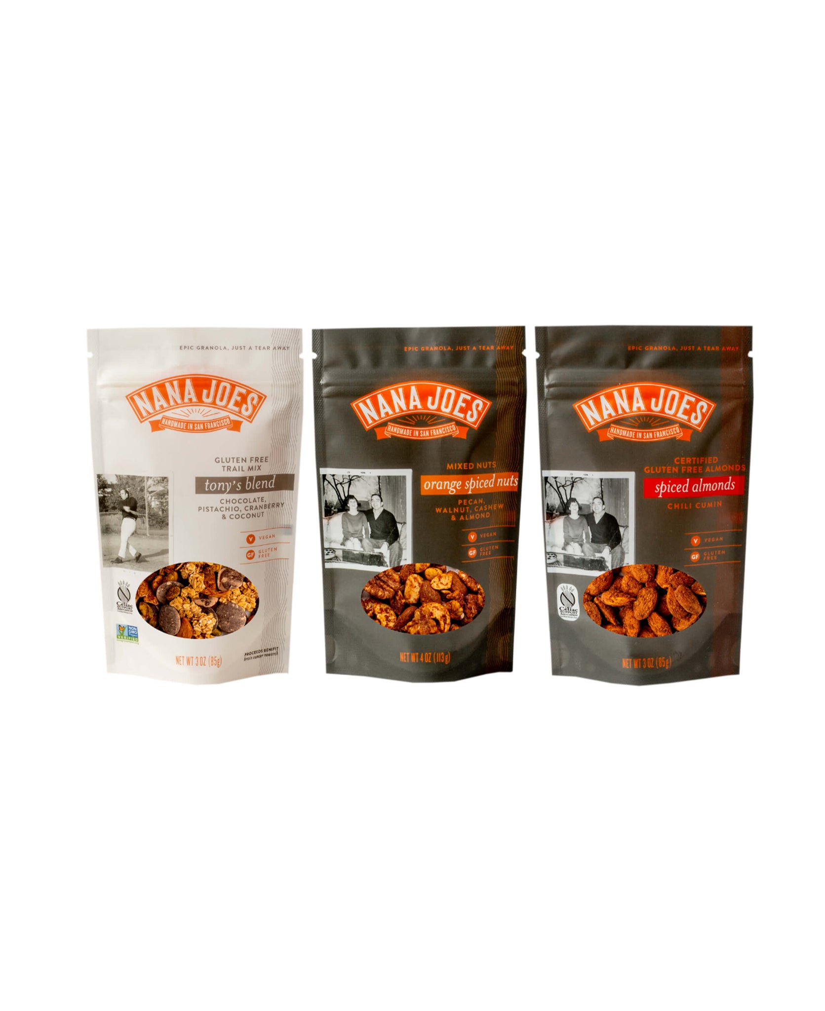 I bring a bag or two of your lower sugar varieties, like the Gluten Free Twisted Praline and happily munch while on the road, whether stuck in traffic on city streets or on long highways. Helps keep my energy up with no sugar spikes! And tastes good too; thank you Nana Joes 🙏🏾.