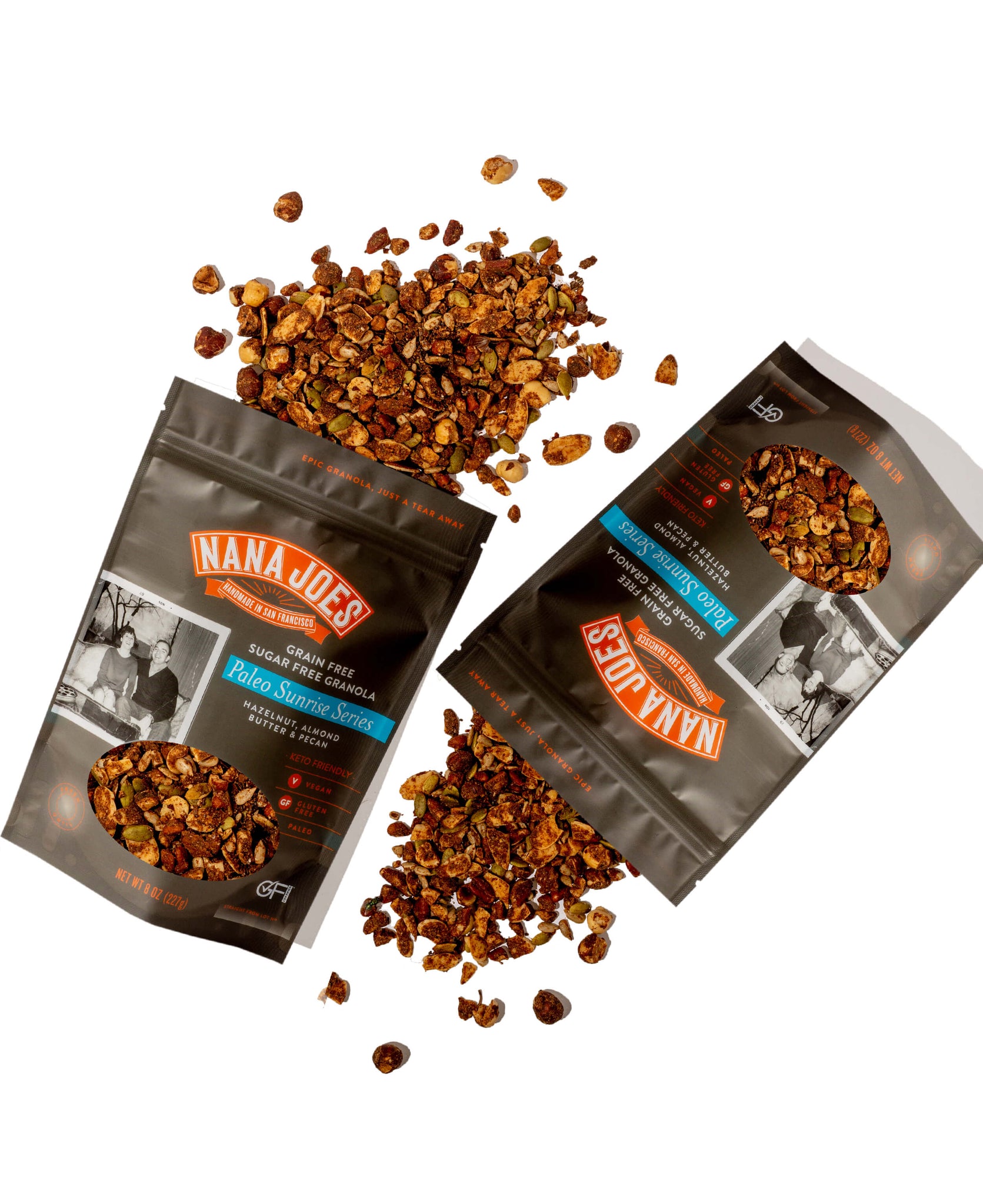 Nana Joes Granola Paleo Sunrise Hazelnut Keto Blend, two bags spilled